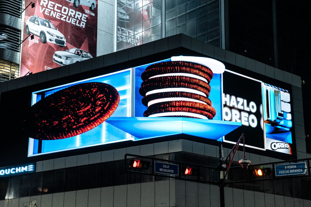 Fortaleciendo su vínculo con los consumidores, Oreo® la galleta más famosa del mundo avanza, en el disfrute y la experiencia de sus productos, al presentar una valla 3D única en sus características técnicas en el país, ubicada en el corazón del Municipio Chacao, en Caracas.